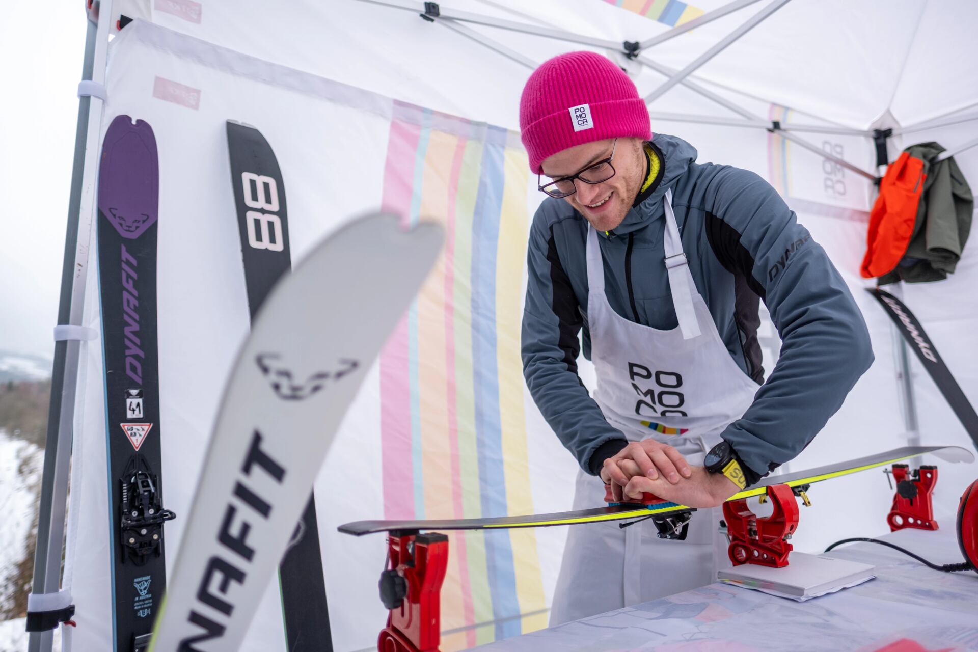 Voskování skialpových pásů nabízel stánek Pomoca v rámci akce Rock Point skialp day a hobby závod Šumavský rys 2026