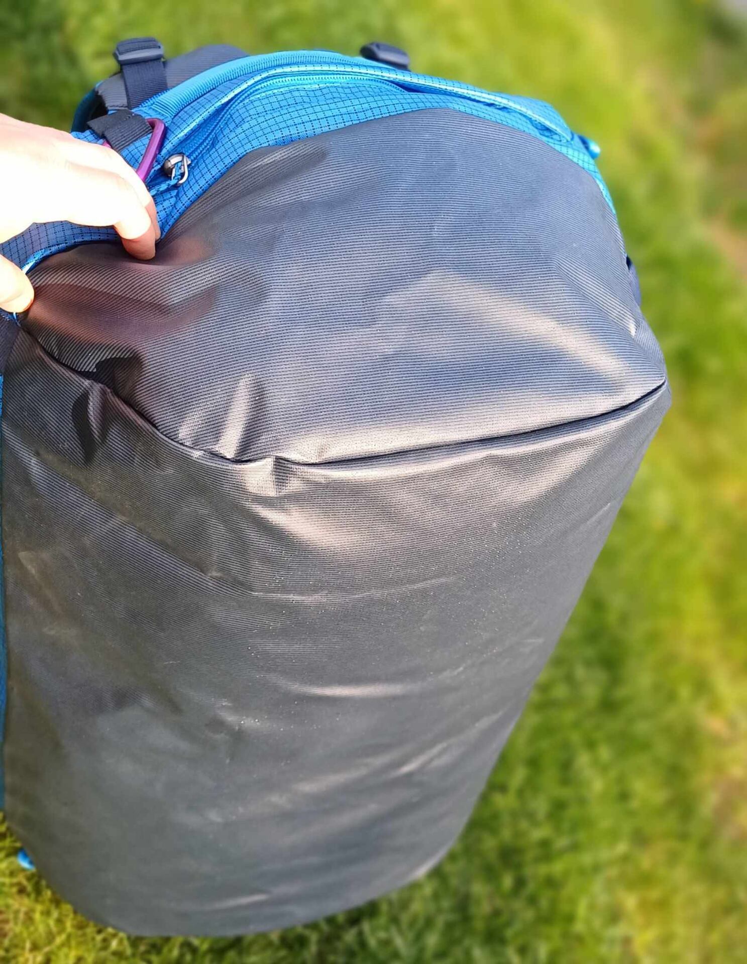Malý obal na tašku – 65litrů složeno do fakt malého „futrálku“