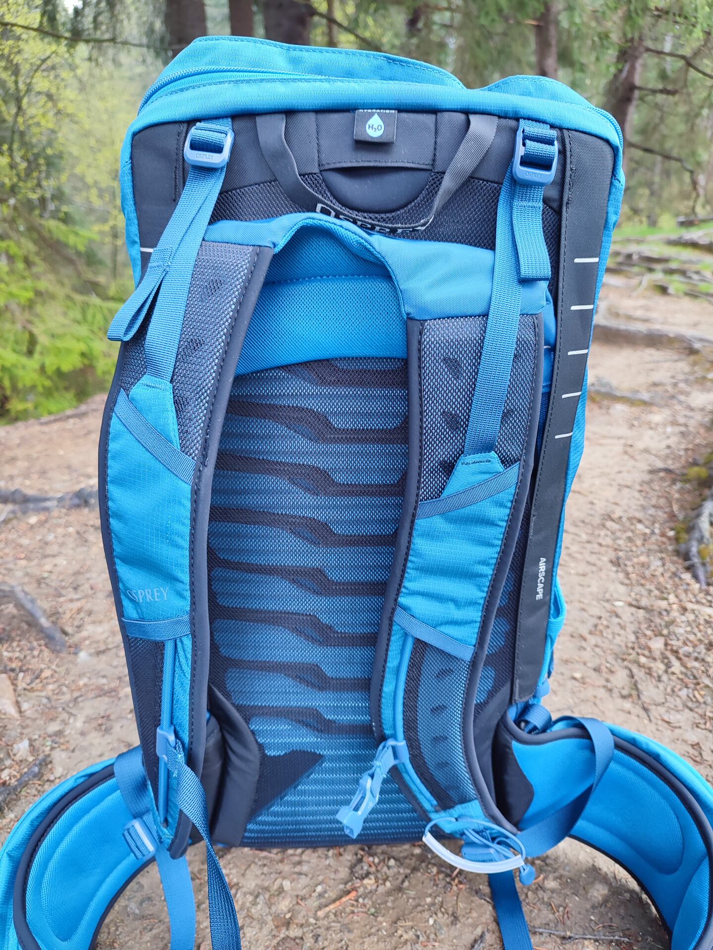Batoh Osprey Talon 26 je vybaven nastavitelným zádovým panelem AirScape™, který umožňuje přizpůsobení délky zad podle postavy uživatele. Panel je tvořen pěnovými výstupky z EVA materiálu, které zajišťují nejen pohodlí, ale i efektivní ventilaci během pohybu. Tento systém pomáhá rozložit váhu nákladu a také ulevuje od pocení zad, což jsem opravdu ocenil zejména při výšlapech do kopců.