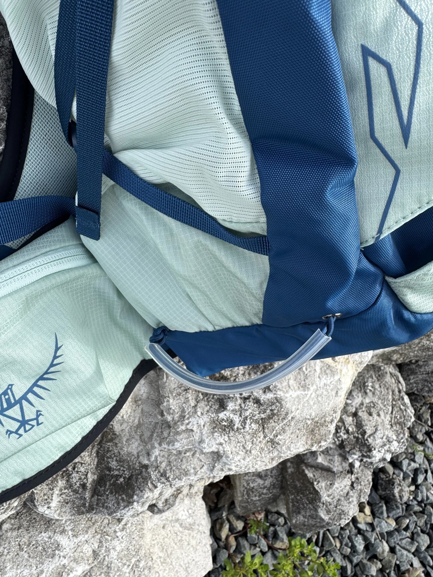 Velkým plusem je i kompatibilita s hydrovakem – uvnitř batohu je samostatná kapsa s vývodem na hadičku. Pro delší túry je tohle řešení mnohem pohodlnější než klasická láhev, kterou můžete vložit do postranních meshových kapes.