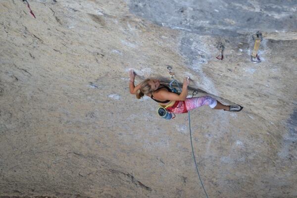 Edita Vopatová při lezení s výbavou Climbing Technology