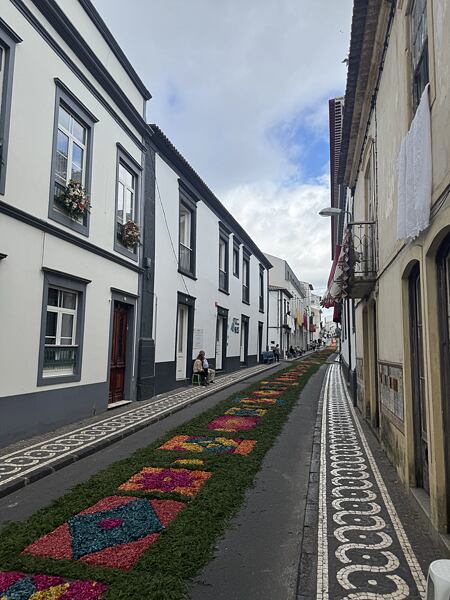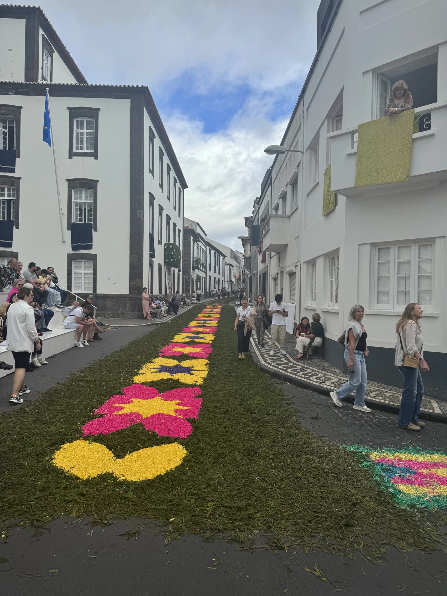 Hned po přistání mě vítaly koberce květin, vlaječky, hudba... Zjistila jsem, že ten samý den na ostrově začíná největší slavnost roku - Festas do Senhor Santo Cristo dos Milagres - nejvýznamnější náboženská slavnost na Azorách konaná tradičně 5. neděli po Velikonocích.