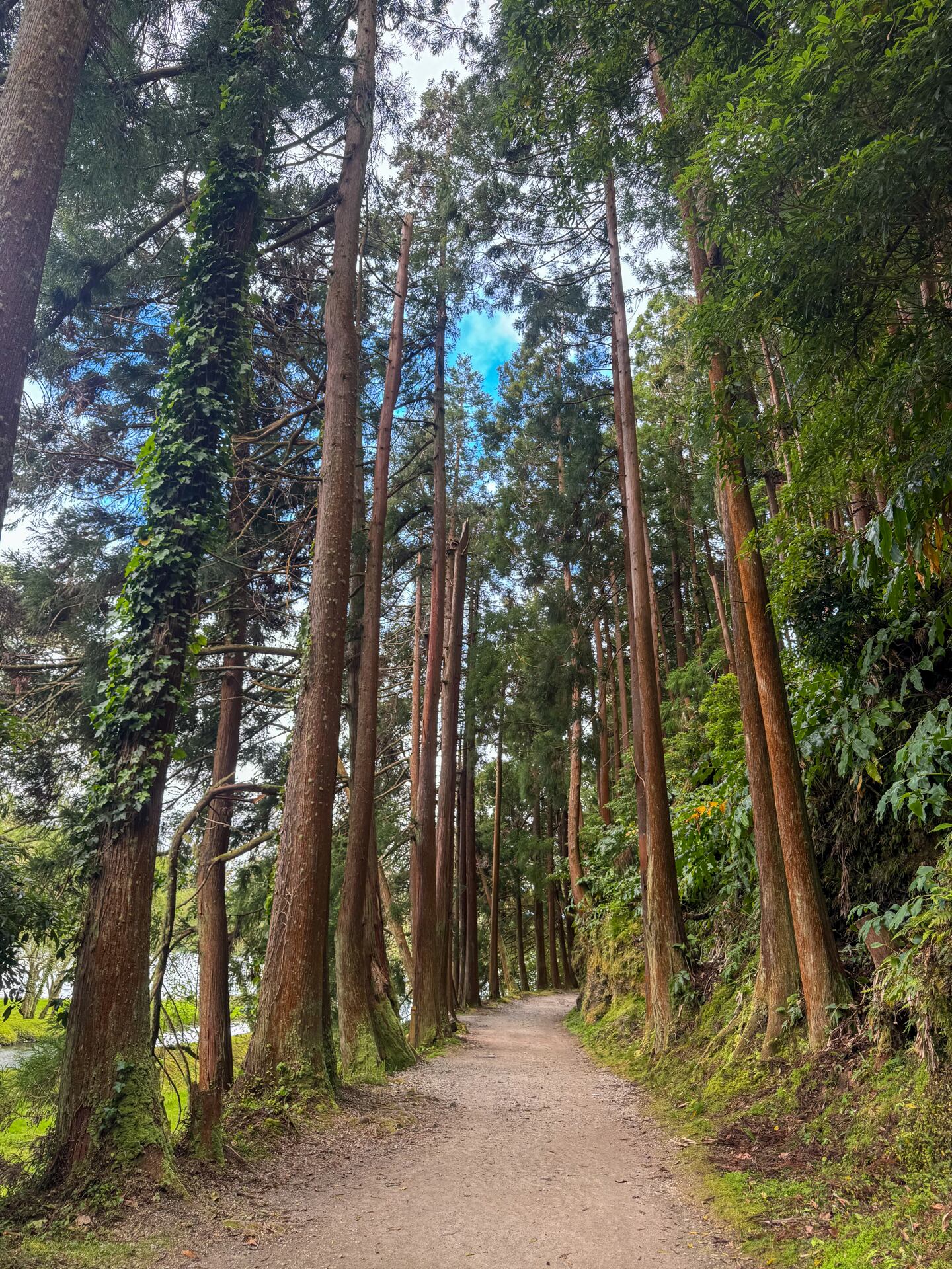 Lagoa do Fogo – jezero v srdci ostrova São Miguel. Divoká krása, smaragdově modrá voda a dramatické sopečné okolí. Asi jedno z nejhezčích míst, která jsem kdy navštívila. Šla jsem tam pěšky z Ribeira Grande, cestou je i Caldeira Velha – kouzelný termální ráj uprostřed džungle na svazích sopky Fogo, kde se můžete vykoupat v teplých přírodních bazéncích pod vodopádem.