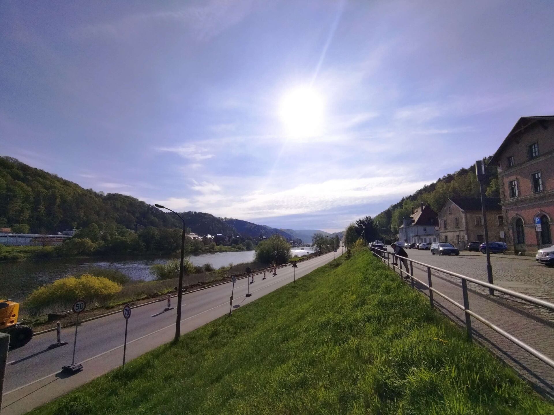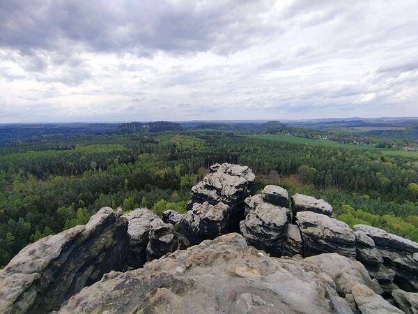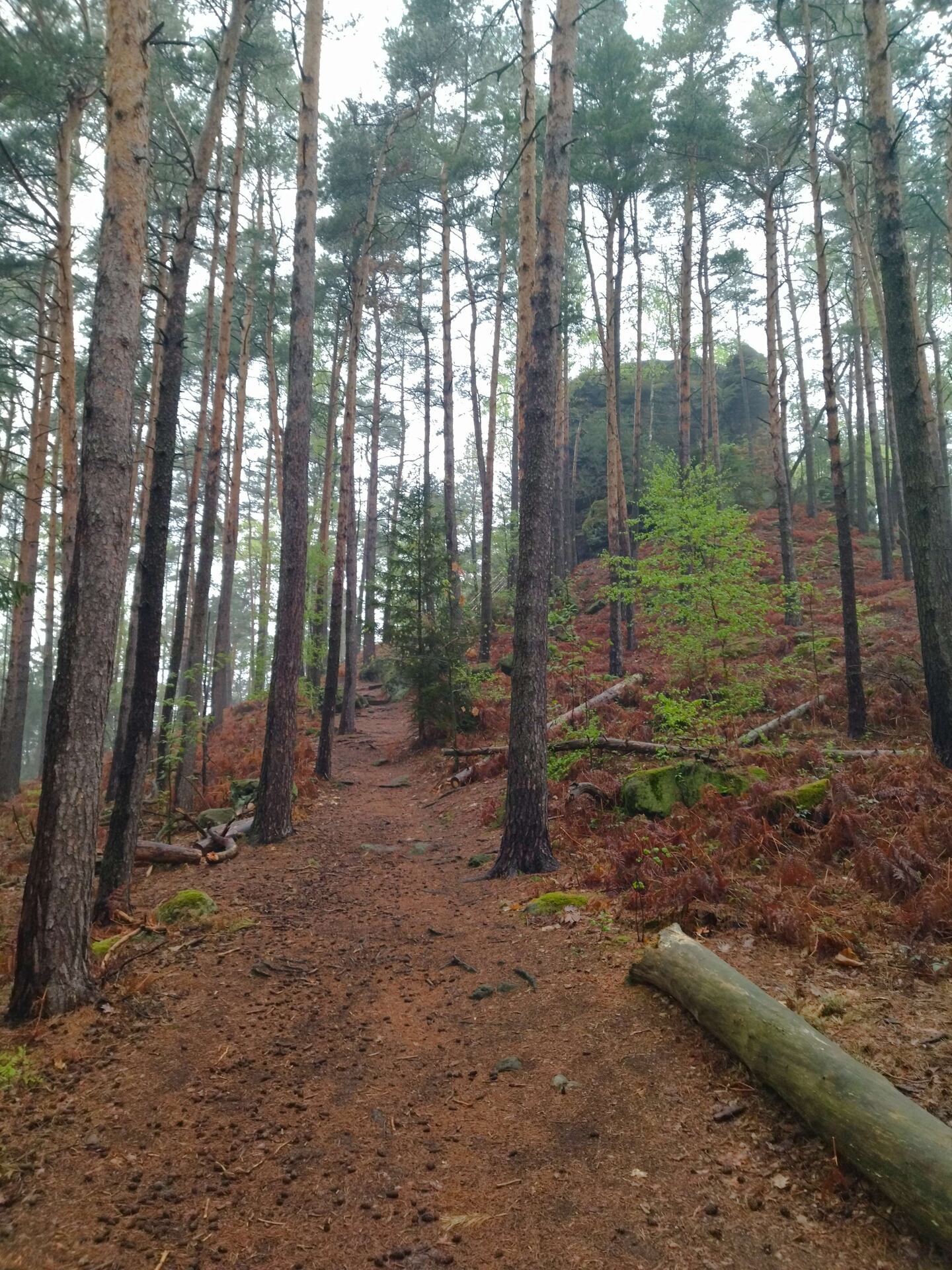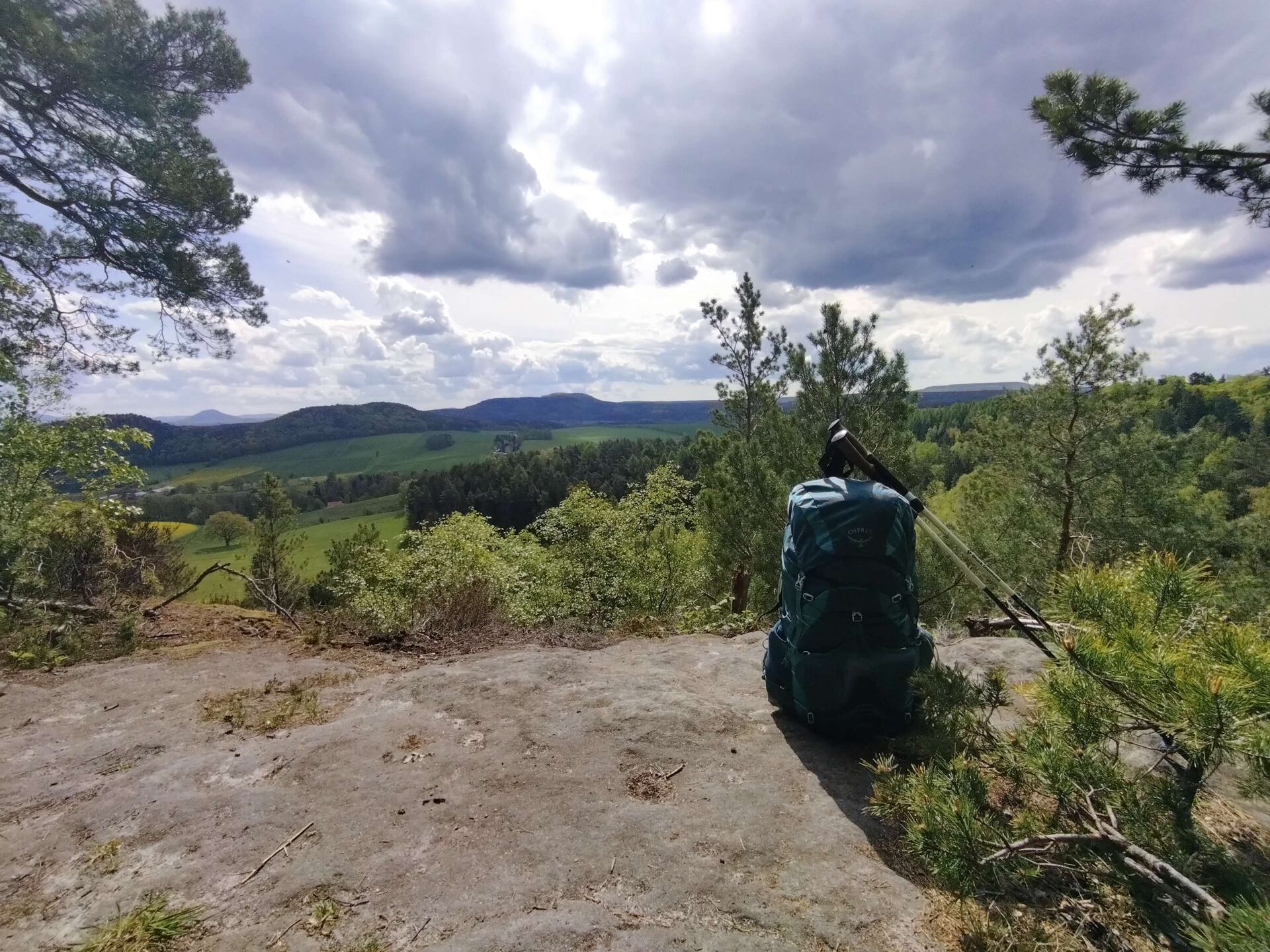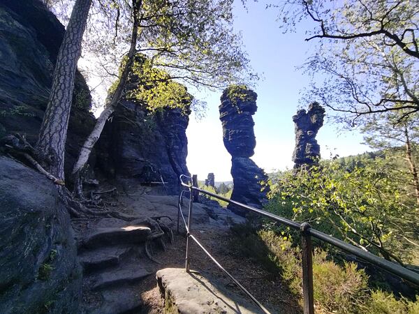 Z nádraží v Bad Schandau vyrážím v 9 h ráno. Vstávání na vlak bylo krušné, ale za odměnu mě vítá příjemné ranní slunce. Po prvních dvou kilometrech jsem zpátky u nádraží, jen o patro výš a na vyhlídce v lese. Jak brzo zjistím, to je charakteristické pro celou trasu Lesní stezky. Pokud je někde vyhlídka nebo skalní výchoz, stezka tam odbočíamotá se tak krajinou pěkně cik-cak. Dnes mě vede přes tři stolové hory.