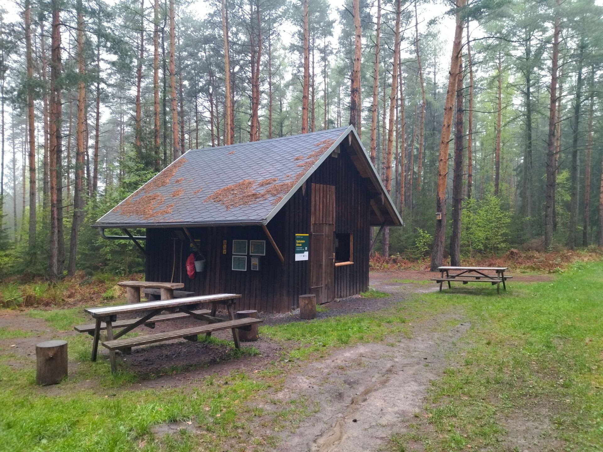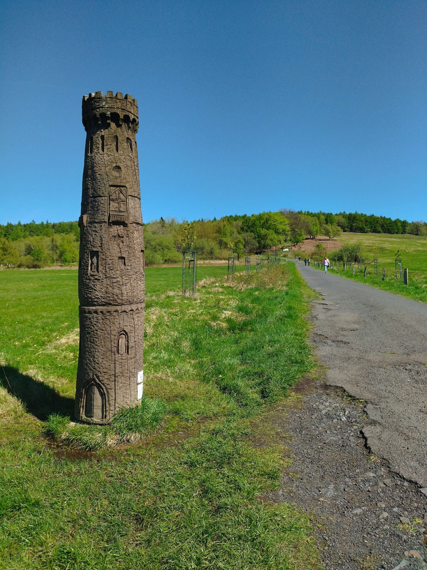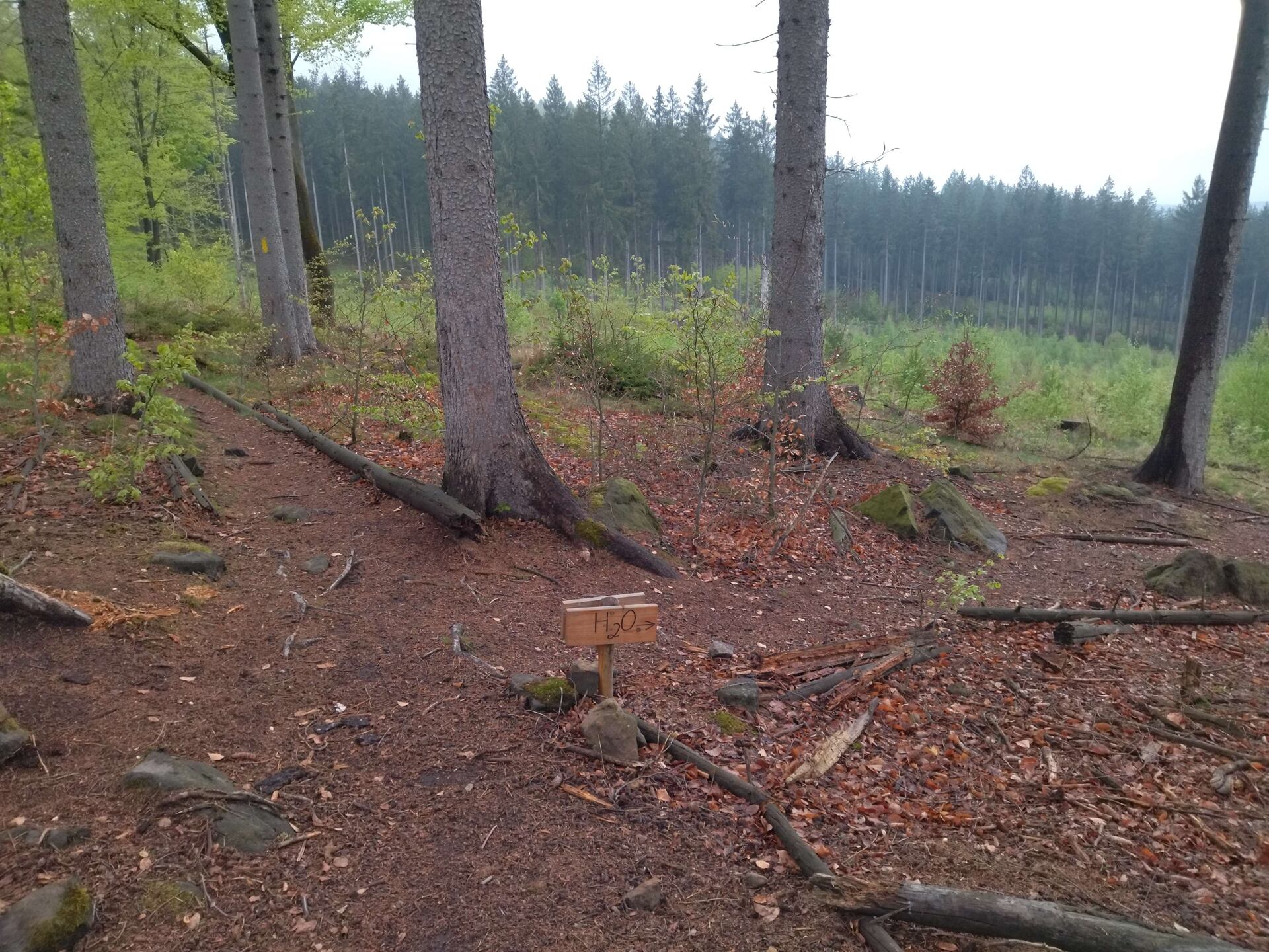 Nejzajímavější místo je dnes Labyrinth, malá skalní skupina v lese. Sama o sobě stojí za cíl výletu, obvláště pro rodiny s dětmi. Pak už jen prší, tak jsou další vyhlídky do mraků. O to víc potěšila velikonoční výzdoba – na jedné lesní křižovatce někdo postavil dva dřevěné zajíčky hlídající ošatku s vejci. Dnešek končím v bivaku Spitzstein. Je tu velká dřevěná útulna, tak nemusím spát pod plachtou.