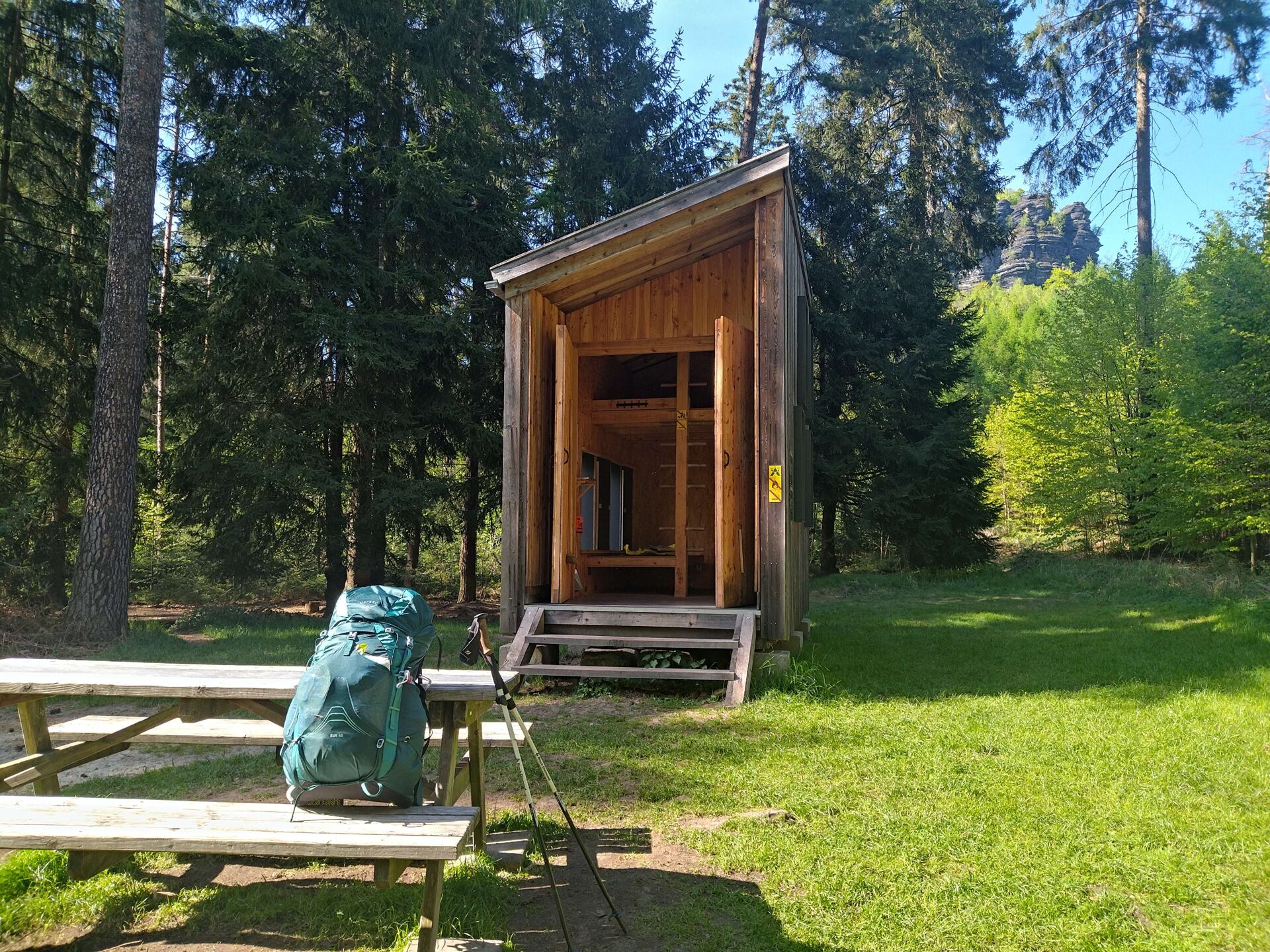 Oficiální popis trasy začíná na vlakové zastávce Schöna a končí na nádraží Bad Schandau. Já se vydávám na cestu v opačném směru, protože v infocentru na nádraží prodávají trekové lístky, kterými zaplatím přespání. Jeden lístek stojí 10 euro, ať už se použije pro chatu nebo pro bivak. Lístek se na místě přespání označí datem a ústřižek vhodí do schránky. Není dobré pokoušet se na oficiálních místech přespat zadarmo, protože jsou pravidelně kontrolovaná strážci a koupení lístku na místě je s přirážkou dalších 10 euro. Zato je ale vidět, že se strážci starají a vše je pěkně udržované.
