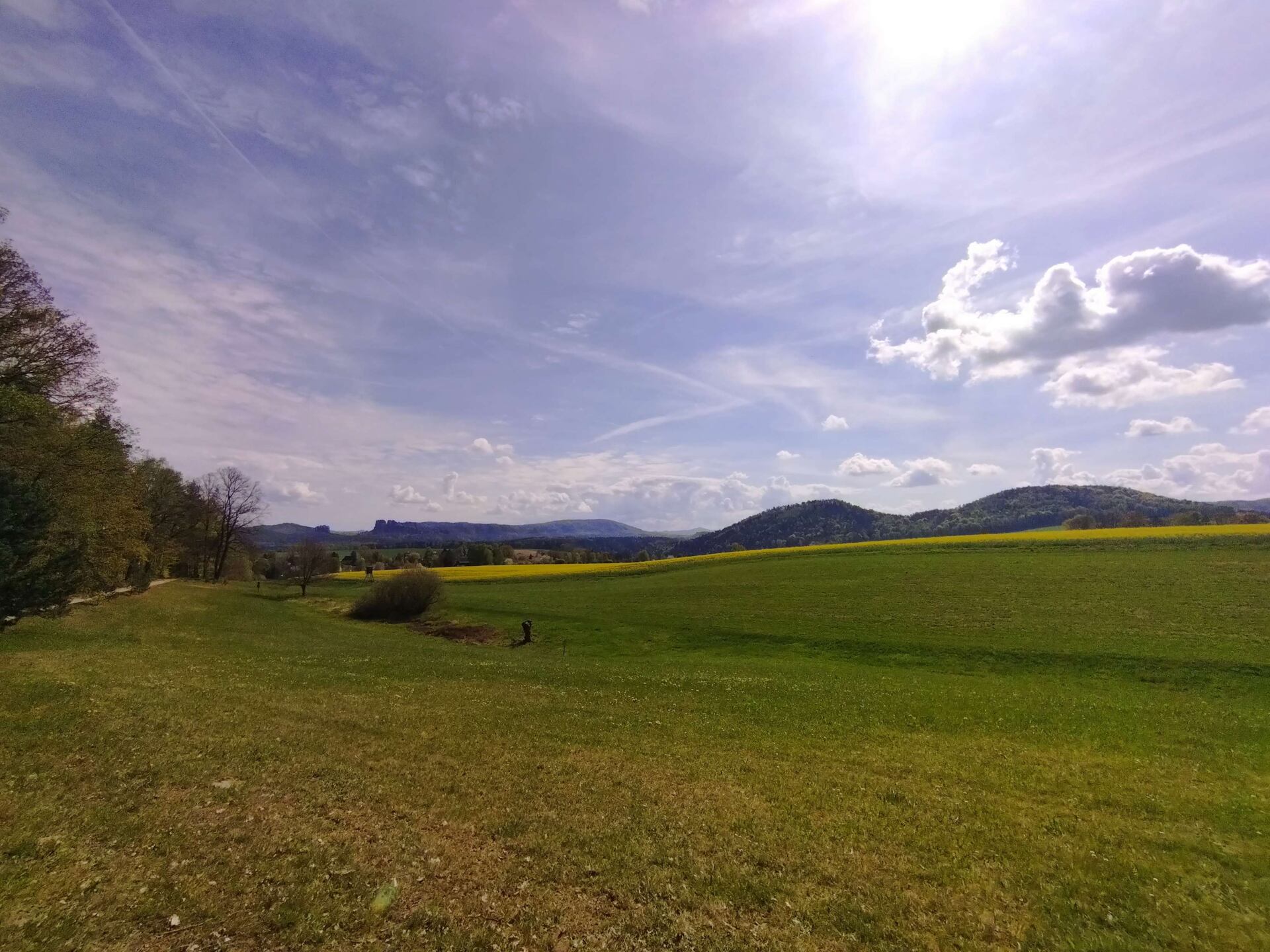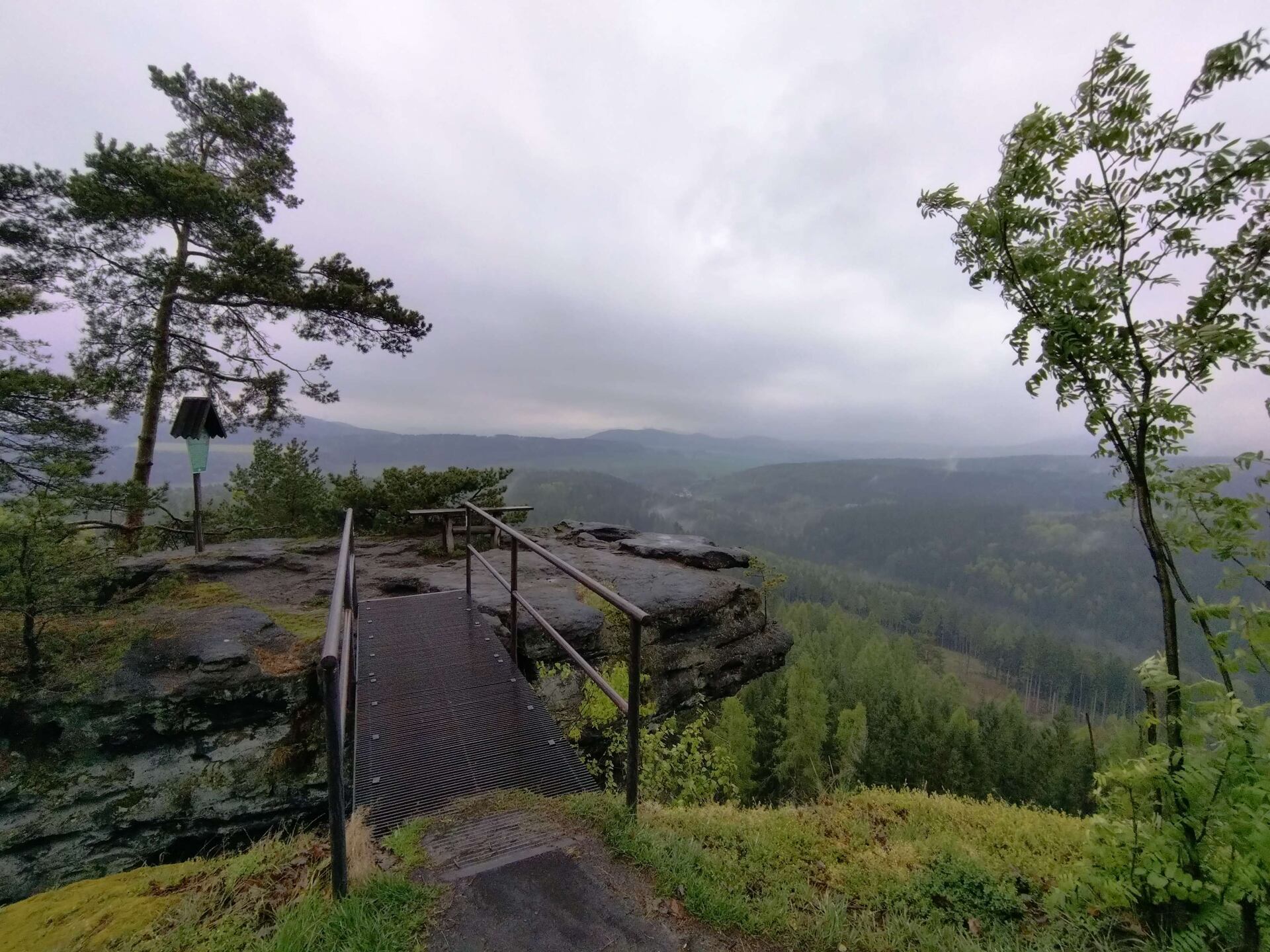 První je Kleinhennersdorfer Stein, rozlohou nějvětší, ale s výškou 392 m nejnižší. Přímo na trase je jen jedna vyhlídka a moc lidí tu nepotkávám.