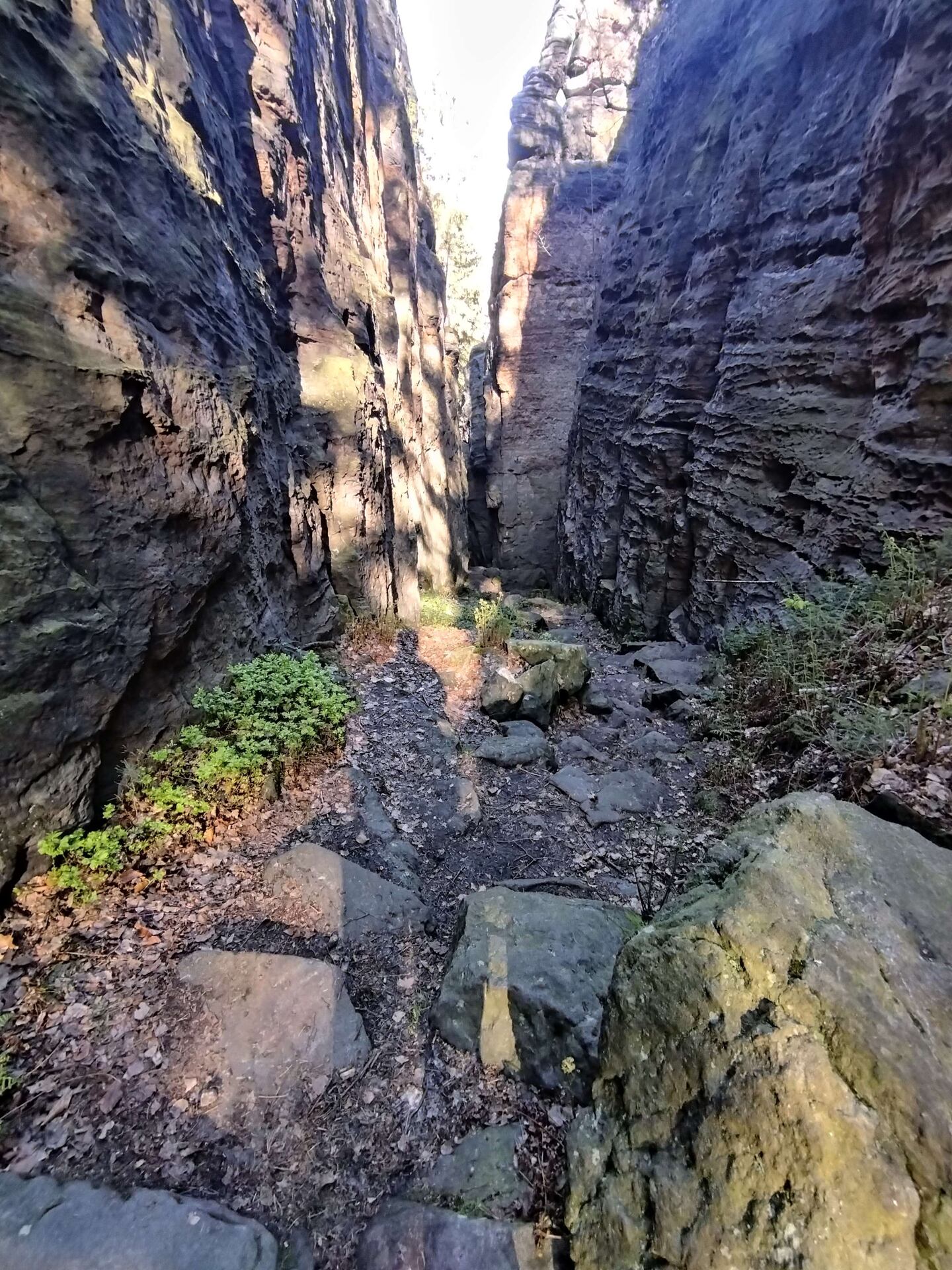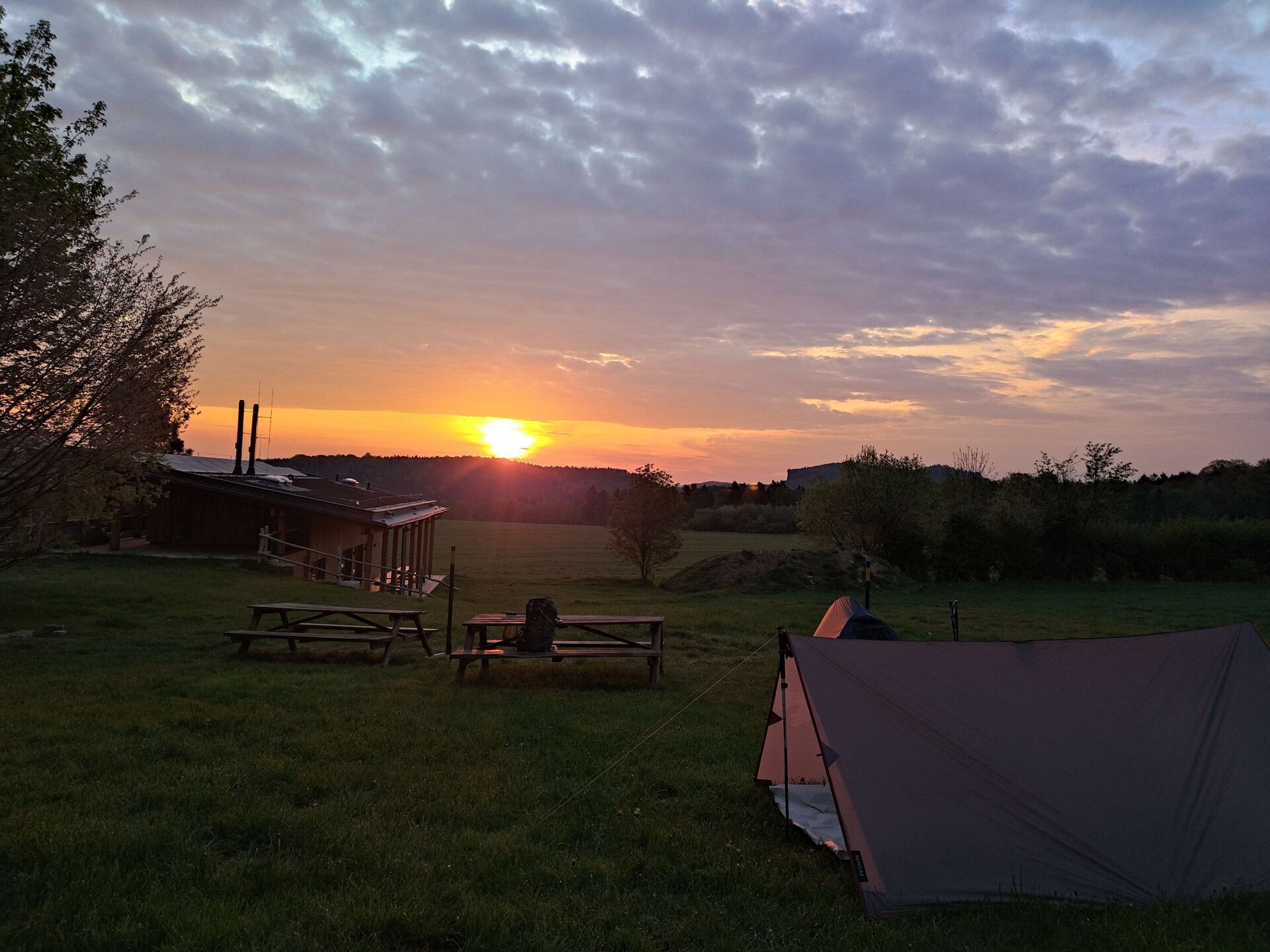 Stejně jako včera potkávám jen málo lidí a většinou jsou to „stezkaři“ jako já. Večer jsem se ubytovala na české straně hranic v autokempu Pod Císařem. Je pátek a po dešti, horolezci ještě nedorazili, takže na mě zbyl volný pokoj a nemusím do chatky nebo pod plachtu. Což je super, protože sice vylezlo sluníčko, ale pro změnu má v noci mrznout. Horká sprcha a dobytí baterek se po třech dnech také hodí.