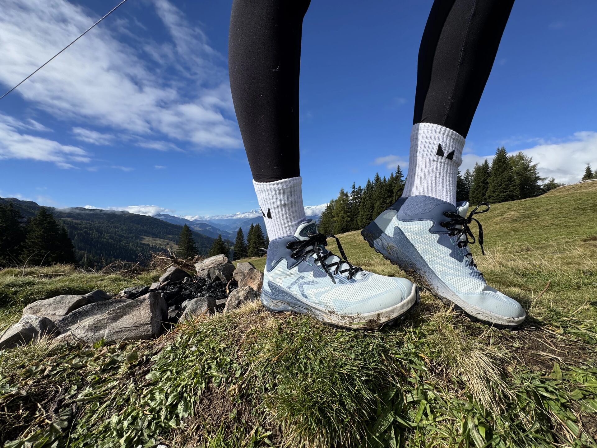 V terénu drží naprosto spolehlivě. Podešev KEEN.ALL-TERRAIN s 4mm vícesměrnými výstupky má skvělou přilnavost i na kluzkém nebo rozbředlém sněhu. Když jsem se dostala ve 2 500 m n. m. do směsi tajícího sněhu a bláta, měla jsem trochu nahnáno – byl to technický terén, ale boty mě ani jednou nezklamaly. Díky lehkému stabilizačnímu plátu v mezipodešvi jsem měla jistotu v každém kroku.