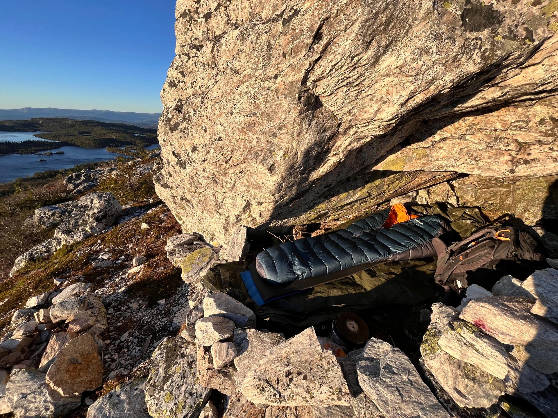 Spaní pod převisem na hoře Vesle Surløytenuten bylo úplně na pohodu