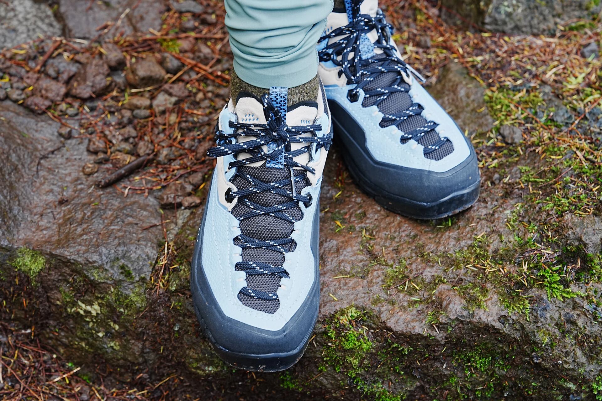 Šířka ve špičce je dostatečná a při chůzi z kopce mají prsty dost prostoru. Ze začátku jsem bojovala s objemem nártu a nastavením šněrování. Bota bude pravděpodobně lépe sedět lidem s nižším nártem, i když hodně záleží na individuálním nastavení šněrování.