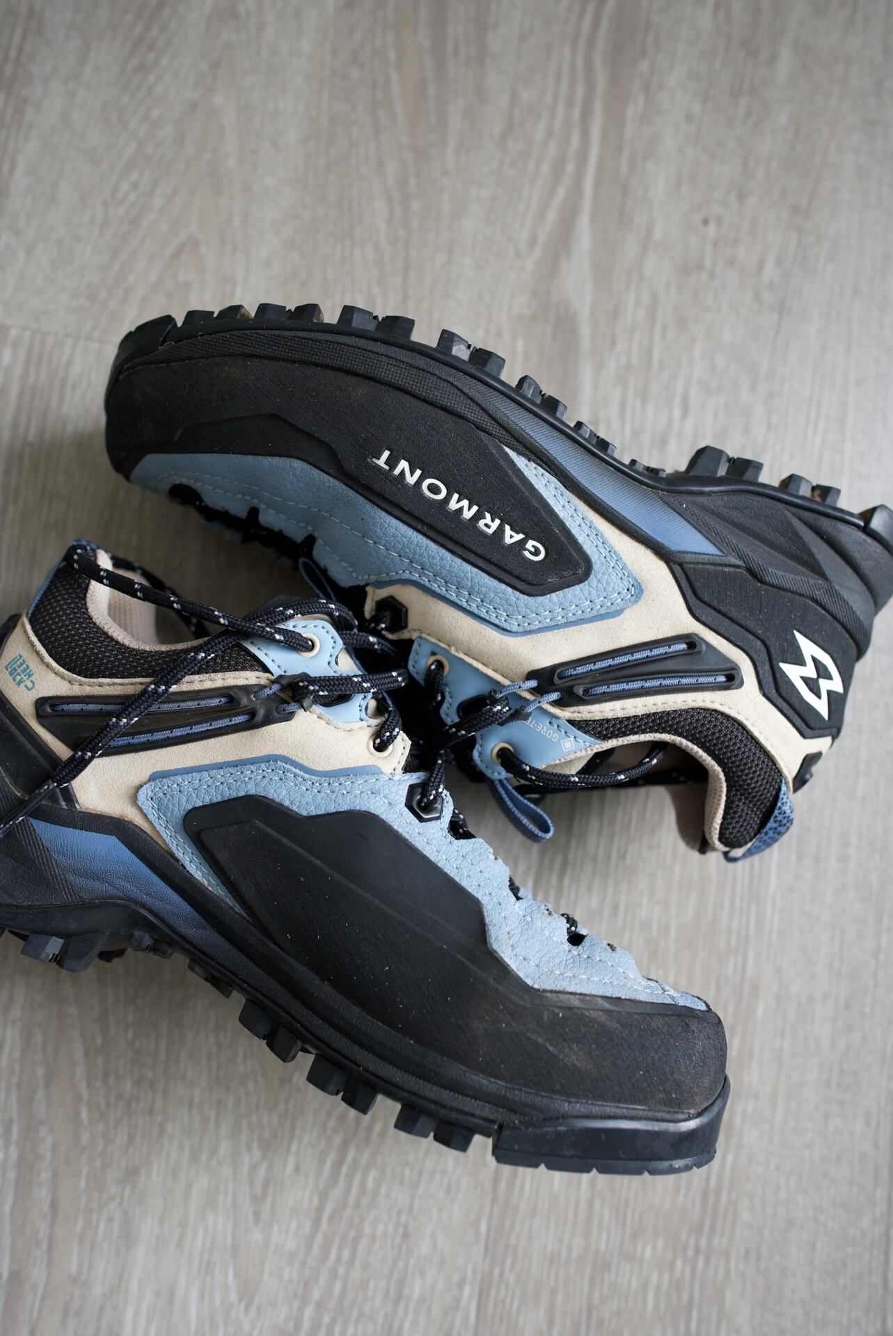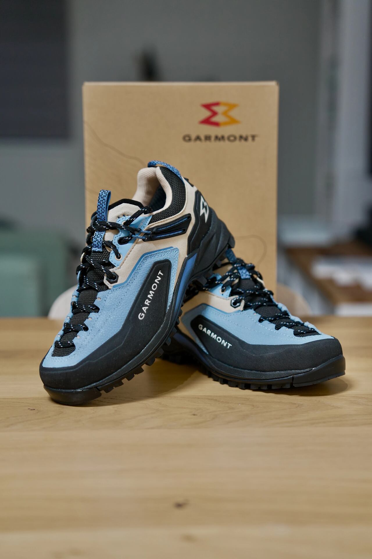 Na úvod začnu možná trochu povrchním aspektem, který je ale pro mnoho lidí – a troufám si říct, že obzvlášť pro ženy – při výběru outdoorové obuvi důležitý, a to vzhledem. Model Garmont Akron GTX zaujme už na první pohled. Kombinace černé, blankytně modré a béžové je svěží a vyvážená, aniž by byla příliš výrazná. Design doplňují žíhané tkaničky, které barevně dobře zapadají do celkového vizuálu. V porovnání s některými outdoorovými botami, které jinak působí nenápadně, ale mají například výrazně křiklavé tkaničky, je zde celek velmi harmonický. Zajímavé také je, že bota si svůj vizuálně atraktivní styl zachovává i ve chvíli, kdy je po náročné túře pořádně zanešená blátem – ale k tomu se ještě vrátím později.