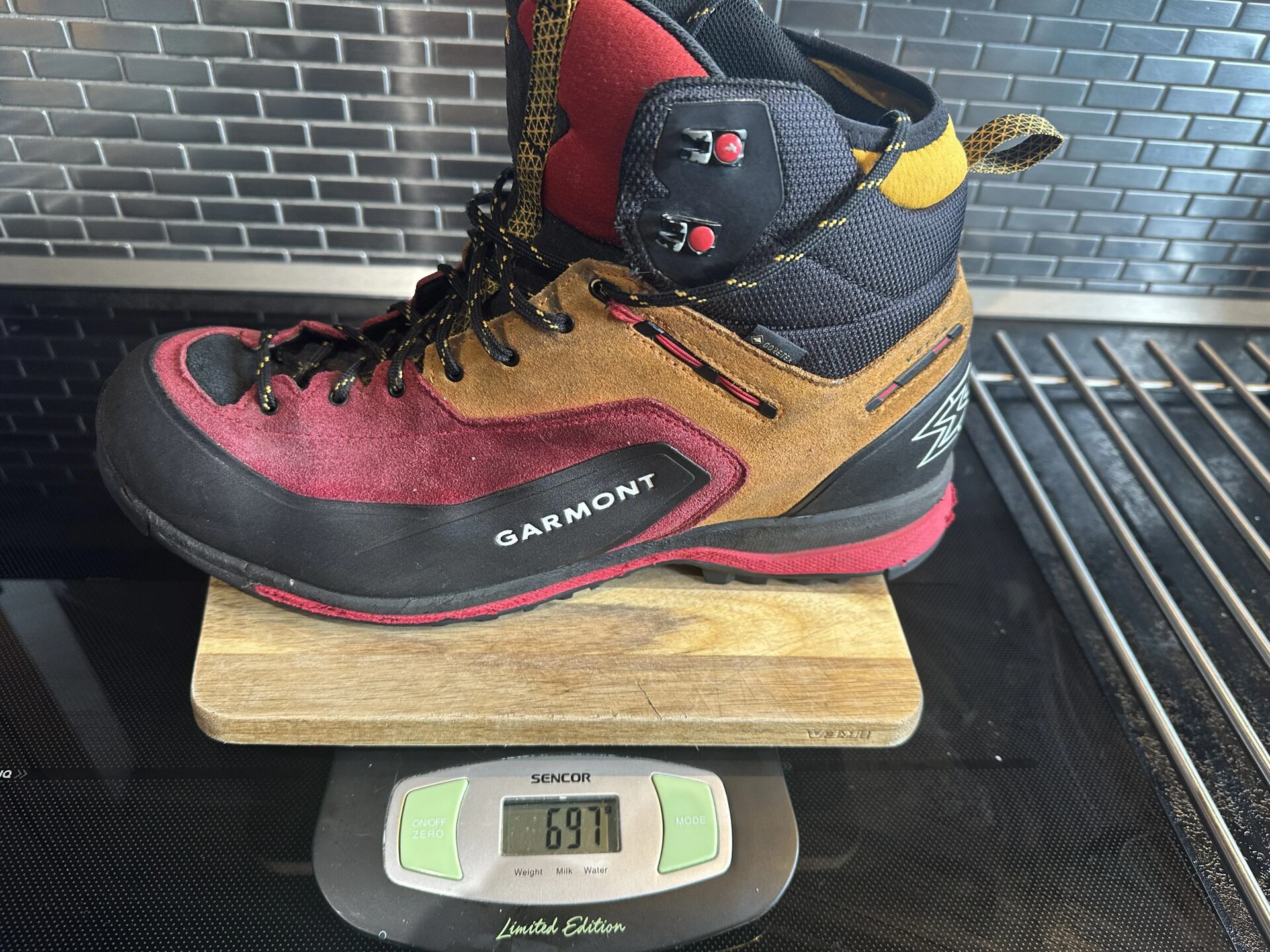 Boty Garmont HEXAGON GTX - vzal jsem si mou standartní velikost 48, boty mi ale neseděly a musel jsem je vyměnit za 47,5. Doporučuji si tento model zkusit v obchodě, bota má specifickou konstrukci i tvar. Je celkové užší a na noze působí velmi odlehčeně, byť na první pohled působí robustnější konstrukcí než předešlé Vetta Tech GTX.