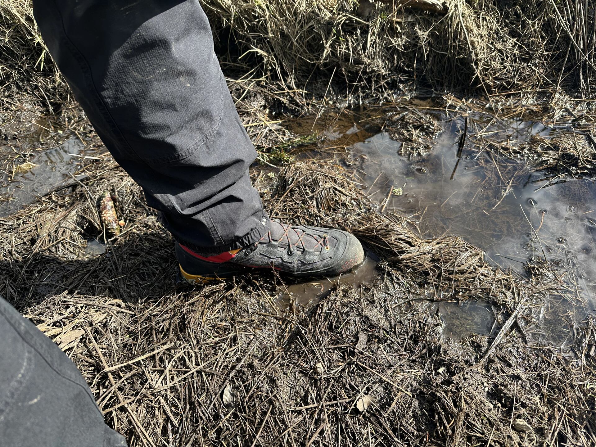 První dojem z chůze mě úplně nezaujal, noha mi v botě klouzala a tlačila na achilovku. Nedal jsem na první pocit a dal jim šanci, problém ale neustával. Po pár kilometrech jsem se rozhodl boty převázat. Tím jsem objevil super vychytávku – středovou sponku na tkaničky. Dovoluje zvolit jiné utažení ve spodní a horní části a tím si botu přizpůsobit podle náročnosti terénu a celkově ji dotvarovat do příjemného pohodlí, čehož jsem dosáhl.