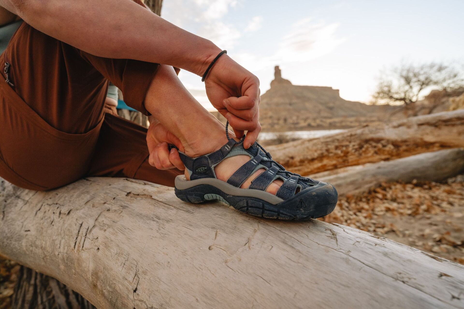 Tyto sandály také poskytují větší stabilizaci nohy v botě v oblasti kotníku, což usnadňuje chůzi na nerovném povrchu. Sandály s ochranou špičky jsou také lepší volbou, pokud si je plánujete brát do vody. Při vstupu do neprůzračné vody snížíte riziko, že si nakopnete palec na noze o nerovnost dna. Širokým výběrem sandálů s uzavřenou špičkou je známá značka KEEN.
