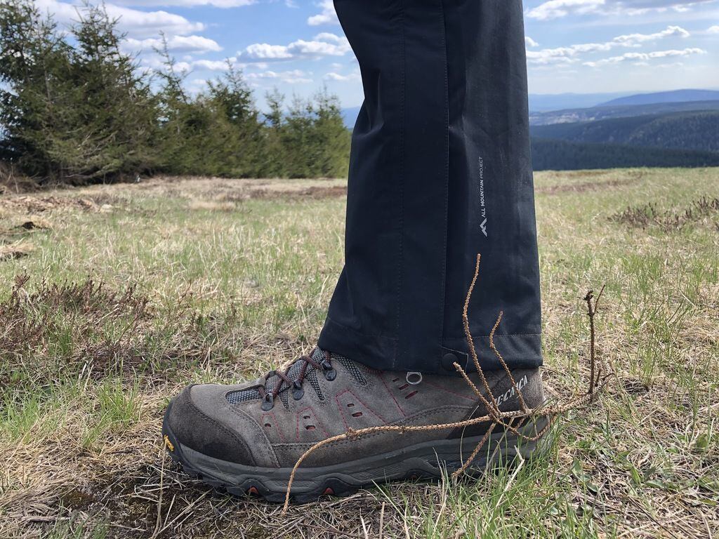Na některých outdoorových kalhotách najdete vpředu nohavice kovové či plastové háčky. Slouží k zaháknutí za tkaničku či spciální úchyt na botě, čímž si nohavici k obuvi napevno zafixujete. Zabráníte vyhrnování nohavice při chůzi, dřepu apod. Navíc i částečně ochráníte nohu před zašpiněním od bláta a prachu. U nízkých trekovek eliminujete napadání nečistot do boty a ještě omezíte zachytávání tkaniček o překážky terénu.