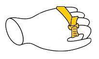 Ke zjištění vhodné velikosti rukavic si změřte obvod vaší dominantní ruky kolem mírně vyklenutých záprstních kloubů v cm pomocí krejčovského metru, jak je ukázáno na obrázku. Změřená hodnota obvodu ruky udává velikost ruky. Většina firem používá tradiční označování velikostí ve francouzských coulech.