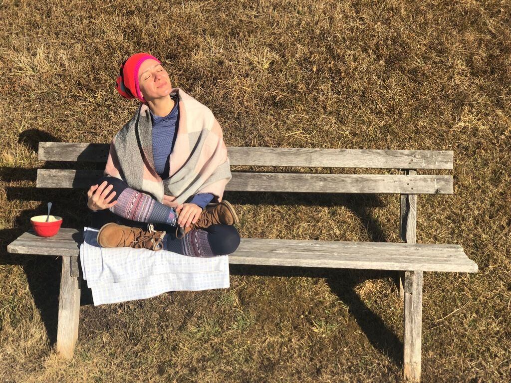 No a jak to mám já? Mé dny jsou všechny spojené s jógou, takže ani na lyžích se jí nevzdám. Vždy na začátku dne zlehka motivuji tělo, aby spolupracovalo v bezpečných rozsazích, v naladění na následující činnost a hlavně, aby se začalo zahřívat, ať nezavdám příčinu svalového zranění způsobeného zimou a zatížením.