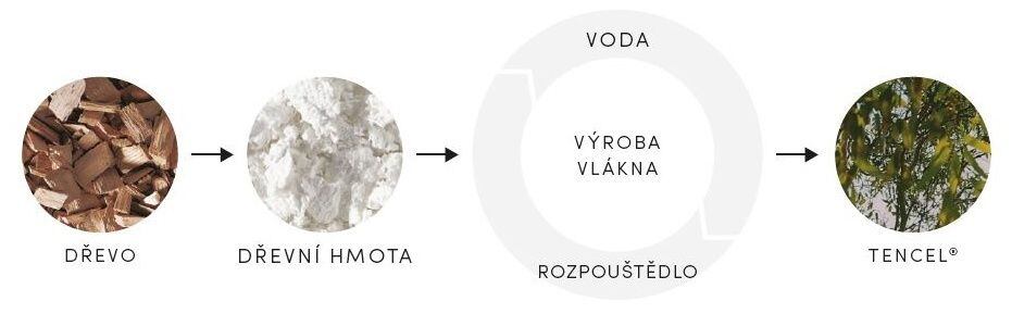 Infografika: proces přeměny dřeva eukaliptovníku na vlánkno Tencel Lyocell