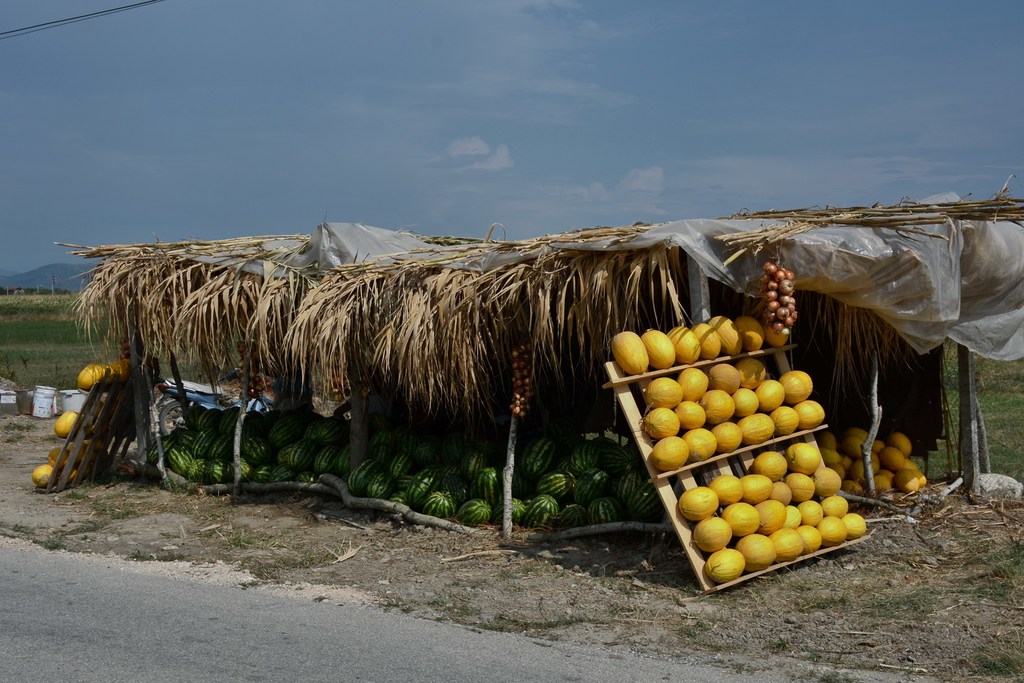 V nižších polohách a v rovinách poblíž moře, vedle všudypřítomných myček, vidíme, že Albánie je zemědělská země a tak máme možnost pozorovat obchodního ducha Albánců podle toho, co se kde pěstuje. Tak postupně míjíme melounária, broskvetária, rajčatária, cibulária, či stánky s olivovým olejem, bylinkami, rakijí a medem, a taky nespočetně pouličních grilovačů a grilovaček kukuřice.