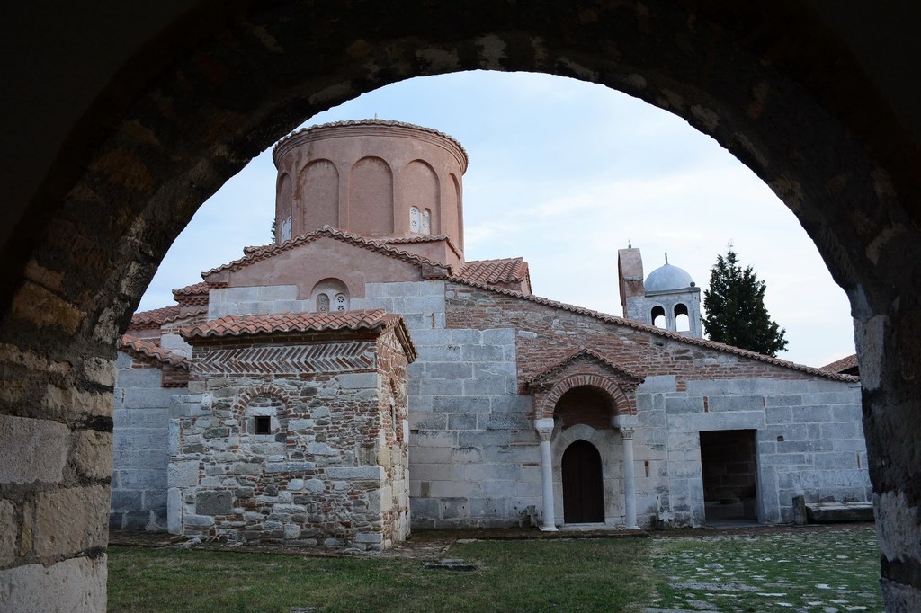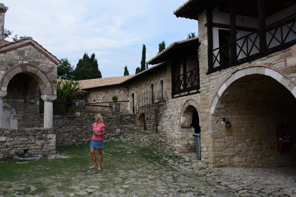 Klášter Ardenica, ve kterém jsou opět mniši. V průvodci se píše, že pokud je zavřeno, můžete zaklepat. Nám se naštěstí dřevěná vrata otevřela sama.
