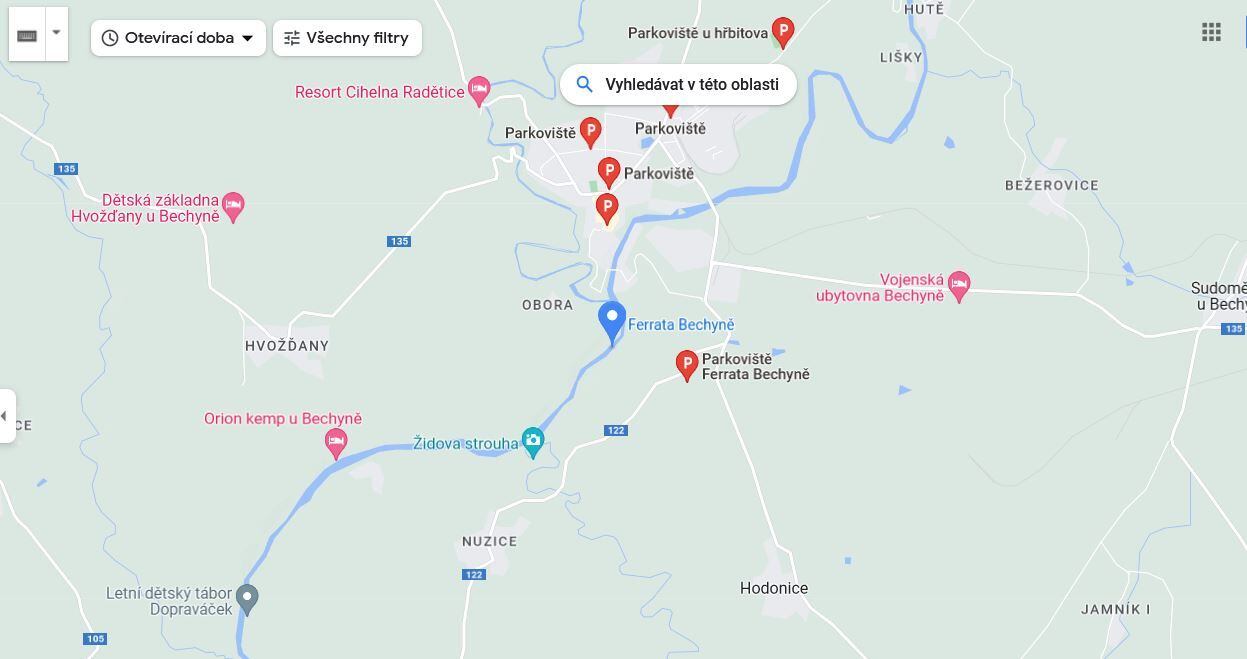 Ferrata se nachází na levém břehu Lužnice jižně od Bechyně v části Zářečí. Parkovat je možné na parkovišti v Bechyni, zodpovědně v Zářečí nebo nedalekém soukromém parkovišti (i s toaletou) u silnice 122 poblíž Kopaniny za poplatek.