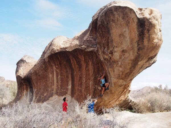 Další zastávkou byla poušť a bouldering. Po cestě do Peñoles jsme si půjčili od jednoho místního lezce bouldermatky. A vydali se do vyprahlé krajiny, kde se najednou mezi kaktusy a keři objevil kopec balvanů. Balvany mají zajímavé kulaté tvary a struktura skály je poměrně hrubá (ryolit), takže člověk musí trochu taktizovat s pokusy v boulderech.