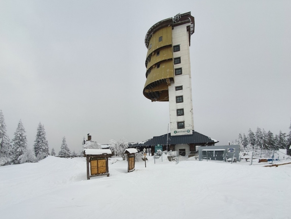 Kvůli hromadě sněhu přespáváme u rozhledny