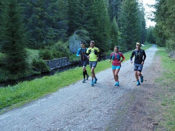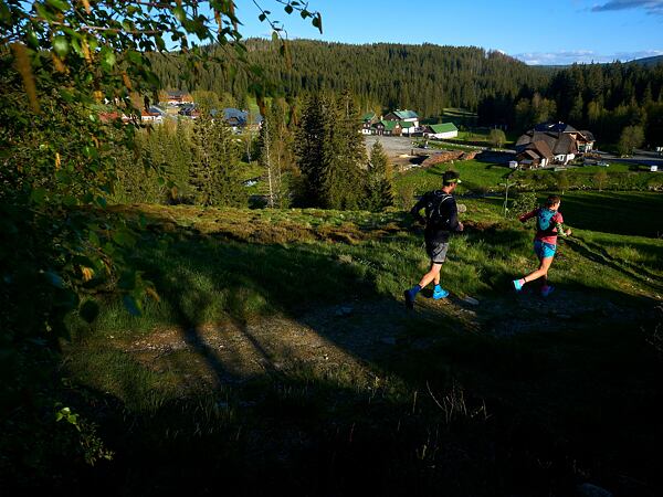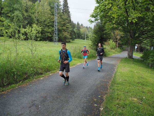 K podivu celého doprovodného týmu všichni běžci jednohlasně souhlasíme s oklikou. Můžu říct, že Mužajs nekecá. Stojí to za to! Má to tady, kluk jeden, naběhané z reprezentačních soustředění i Rock Point Trailrunningových kempů. Krásné výhledy nad Modravou pohladily naše srdíčka a všichni pak s radostí upalujeme s kopce do Modravy.
