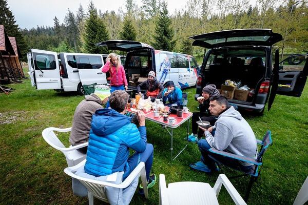 Pár ranních vtipů přidává na dobré náladě a najednou se všichni těší na porci dalších kilometrů..., kolik že jich dnes bude? Nikdo to moc neřeší! Balíme batohy do všelijakého počasí, které předpověď věští, nezapomenout na pár dobrot a rychle na snídani, která je již připravena. Support tým funguje skvěle.