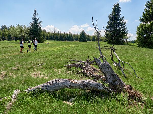 Tohle rozhodně nebude procházka růžovou zahradou. Co také čekat od okruhu, který vede přes nejvyšší vrchol Krušných hor – Klínovec 1244 m. Královský okruh se vším všudy. V první polovině budete téměř neustále stoupat. Nepřepalte začátek. Bývalá vápenka nebo zaniklá osada Königsmühle určitě stojí za krátkou zastávku. Za Klínovcem trasa postupně klesá, ale vyhoupnete se ještě třeba na vrchol Meluzína 1097 m. V městečku Kovářská při objevitelské výpravě naši běžci „vykoupili“ cukrárnu. Co vy, také se odměníte za výkon?