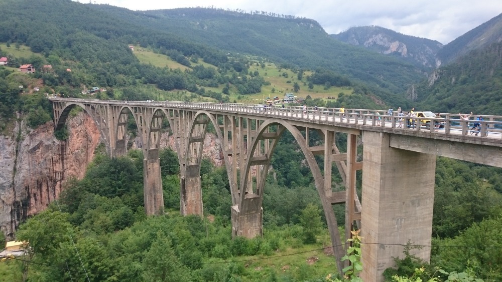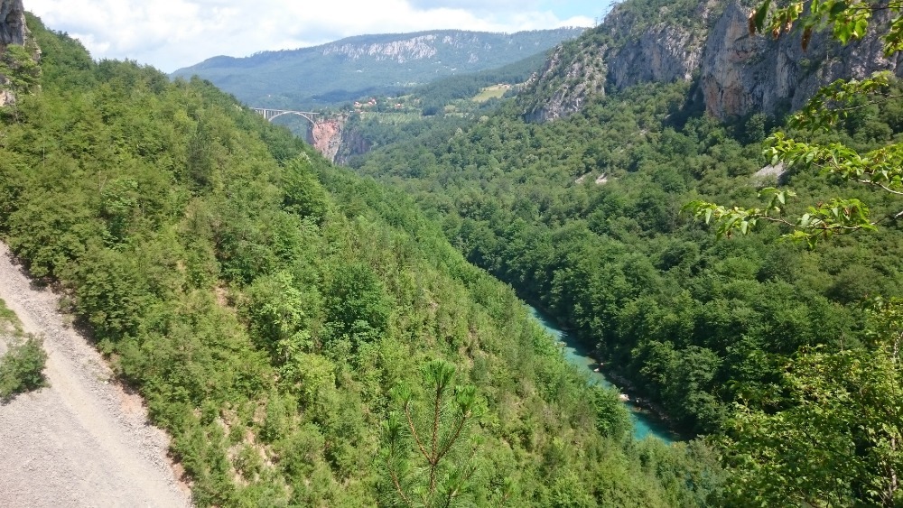 My jsme si to na kolech sjeli k mostu nad řekou a potom pokračovali proti proudu. Krajina kolem řeky Tary je nádherná, chvíli jsme ještě měli v zádech most.