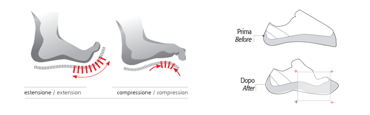 Inovativní S-Heel™: umožňuje dokonalou stabilitu při torzi, čímž zvyšuje výkon a flexibilitu patních bloků. Inovativní konstrukce podrážky ve dvou částech, vytvořená pro zvýšení podélné flexibility, umožňuje botě udržet dokonalou stabilitu při torzi, čímž zvyšuje výkon a přizpůsobivost paty.