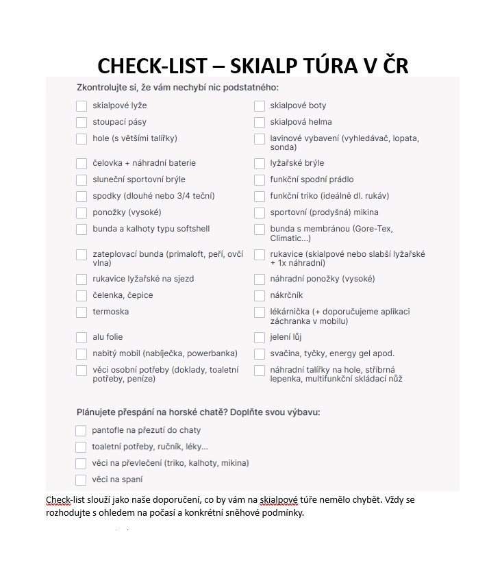 - Pro kurzy v Tatrách - ovládat skialpovou výbavu a mít zkušenosti se sjezdem v neupraveném terénu
