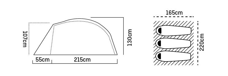 - Rozměr vnějšího stanu 215 x 130 x 107 cm
