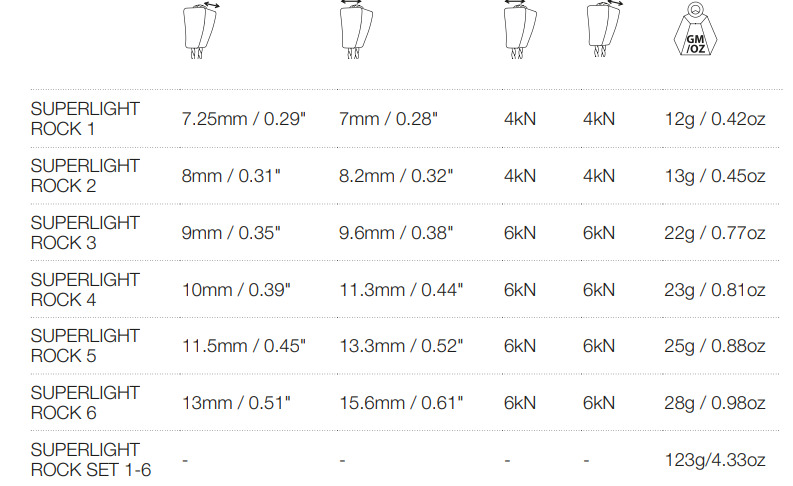 Vklíněnce Wild Country Superlight Rocks jsou základním a originálním vybavením pro lezení nalehko a bezpečně bez kompromisů.