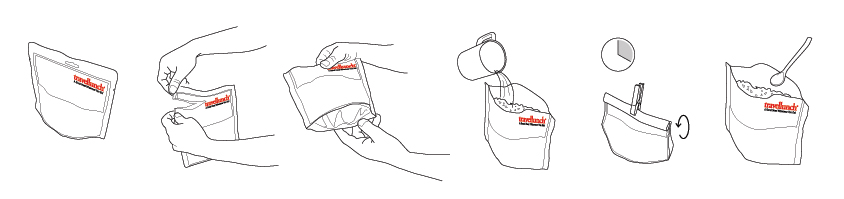 Expediční a cestovatelská lyofilizovaná strava. Velmi "praktický vynález", který ocení všichni outdooroví nadšenci. Sáček slouží zároveň jako nádobí pro přípravu. Otevřete, zalijete horkou vodou, zahnete okraj a necháte 5 - 10minut stát a vydatné a chutné jídlo je připraveno ke konzumaci. Minimální odpad a spotřeba vody (nemusíte mýt nádobí), stačí jedna nádoba na vaření i pro vícečlenou skupinu. Bez konzervantů, široká nabídka různých jídel včetně bezlepkových variant, ve dvou velikostech 1nebo 2 porce (125g, 250g).
